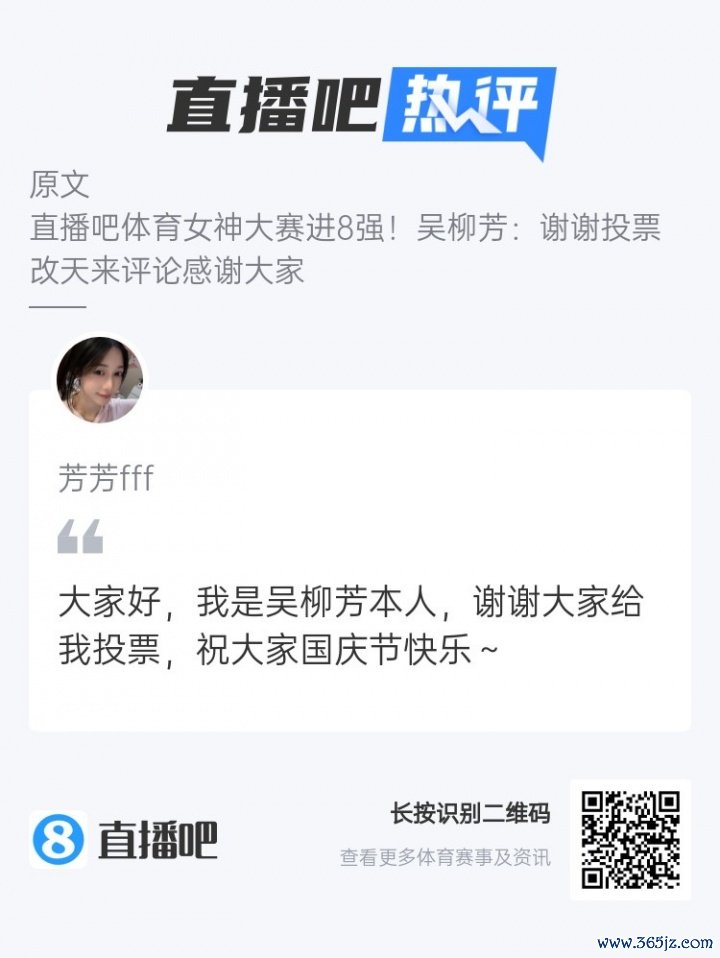 早在周二晚,吴柳芳在个人抖音直播中被粉丝提醒已进入到体育女神大赛八强,她当时就回应表示:“谢谢你们的投票,欧冠我知道我知道。改天我也去下一个APP,