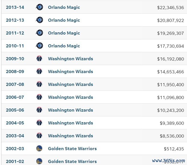 阿里纳斯的NBA薪资列表篮球比赛,生涯薪资总额1.6亿美元