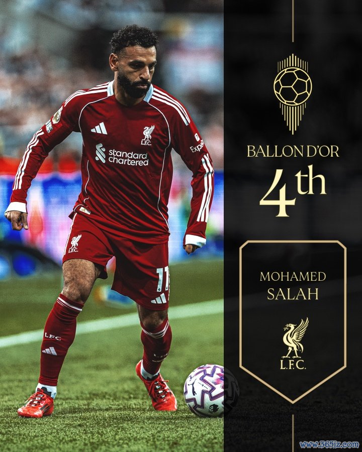 09月27日讯 2025年金球奖,萨拉赫排名第四,今日金球奖官方公布了积分 明细和100名记者的投票详情。