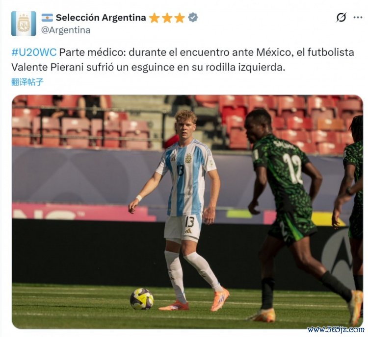 皮埃拉尼近4场世青赛皆为阿根廷U20杆位出战,欧冠但他在对阵墨西哥的1/4总决赛 中只出场28分钟就被换下。阿根廷足协发布医疗公告, 活力运动家园NBA直播确认皮埃拉尼在对阵墨西哥的赛事 中左膝关节扭伤 。