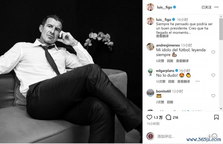 菲戈社媒晒出自己身穿正装的照片,配文:“我一直认为自己能够成为一个好主席,我觉得时机已经到了。”