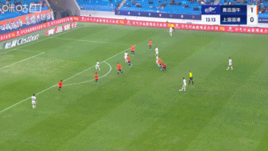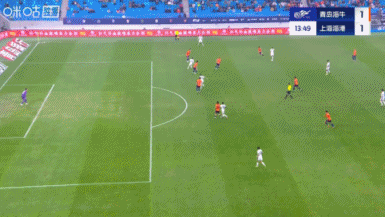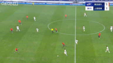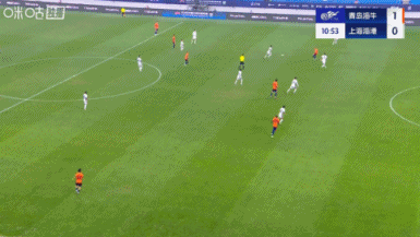 第11分钟,青岛海牛左路发动攻击 ,韦林顿回转 做球,萨里奇再送斜传到危险区域 ,兰克尔-泽胸部停球后稍作调整左脚凌空爆射入网,海牛1-0领跑 ↓
