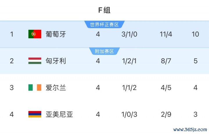 葡萄牙10分领跑F组, 活力运动家园直播吧匈牙利5分第二。
