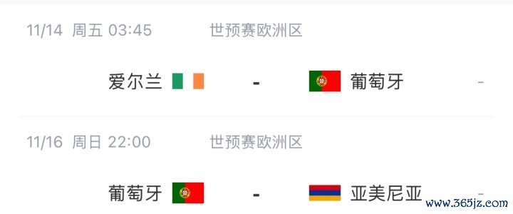 葡萄牙世预赛最后两场分别对阵爱尔兰和亚美尼亚, 欧冠下轮取胜即可晋级。