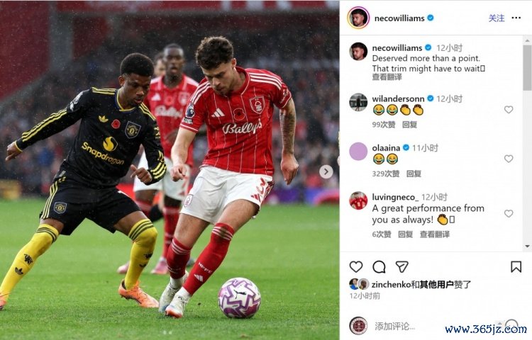 内科-威廉姆斯社媒晒出比赛照片, 活力运动家园配文调侃曼联蓄发哥:“我们本应得到不止一分, 欧冠直播吧理发还得再等等。”