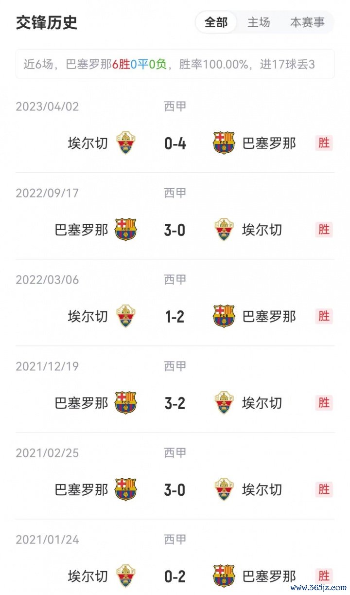 赛前巴萨7胜1平2负,积22分排名西甲第3;埃尔切3胜5平2负,积14分排名西甲第8。双方上次交手要追溯到2023年的西甲,巴萨客场4-0埃尔切。