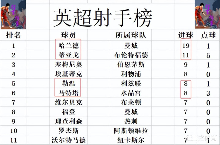 射手榜方面,哈兰德今天错失绝佳机会未能破门,还是19球领跑,蒂亚戈11球位列第2。塞梅尼奥9球排在第3,马特塔今天打入一球后,追上埃基蒂克和勒温2425英超积分榜,3人8球并列第4。福登,理查利森等人7球刚好挤入前十。