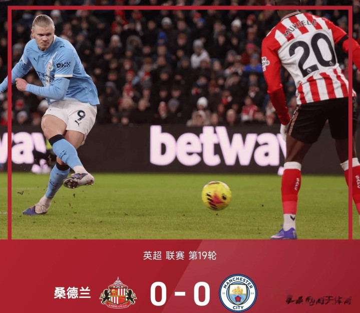 25/26赛季英超联赛第19轮,桑德兰0-0互交白卷闷平曼城。上半场,B席曾打入1球但越位在先无效;下半场,两队均制造多次良机,不过格瓦迪奥尔射门中柱,最终,桑德兰0-0战平曼城本赛季主场仍然保持不败,曼城连胜则被终结。