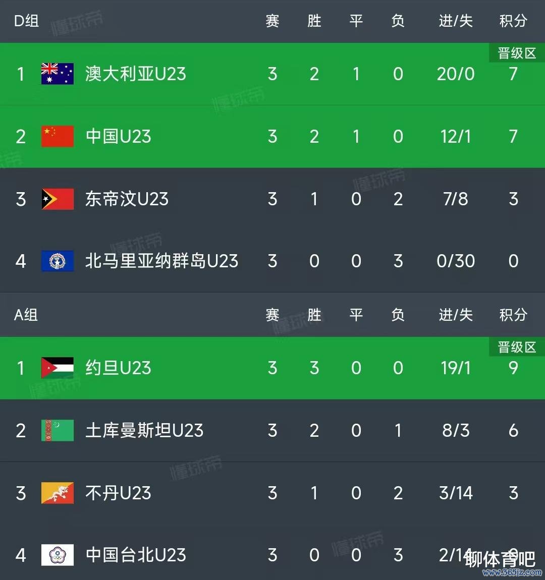 U23亚洲杯预选赛小组赛结束了所有赛事 , 最新积分榜如下!