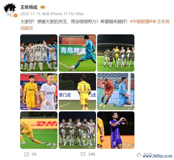 2022年前后,王年将成的微博,内容聚焦在个人的中超球员生涯,分享练习 日常和赛事 出色 照片: