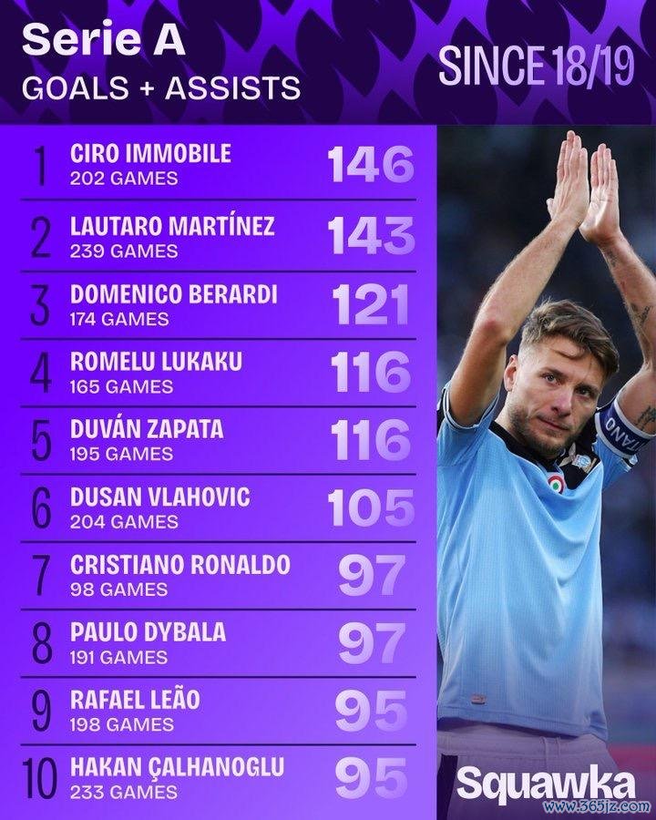 活力运动家园英超直播在意甲职业联赛 直接加入 得分 的前十名球员。其中C罗以接近场均一次的贡献排名总榜单第7名。